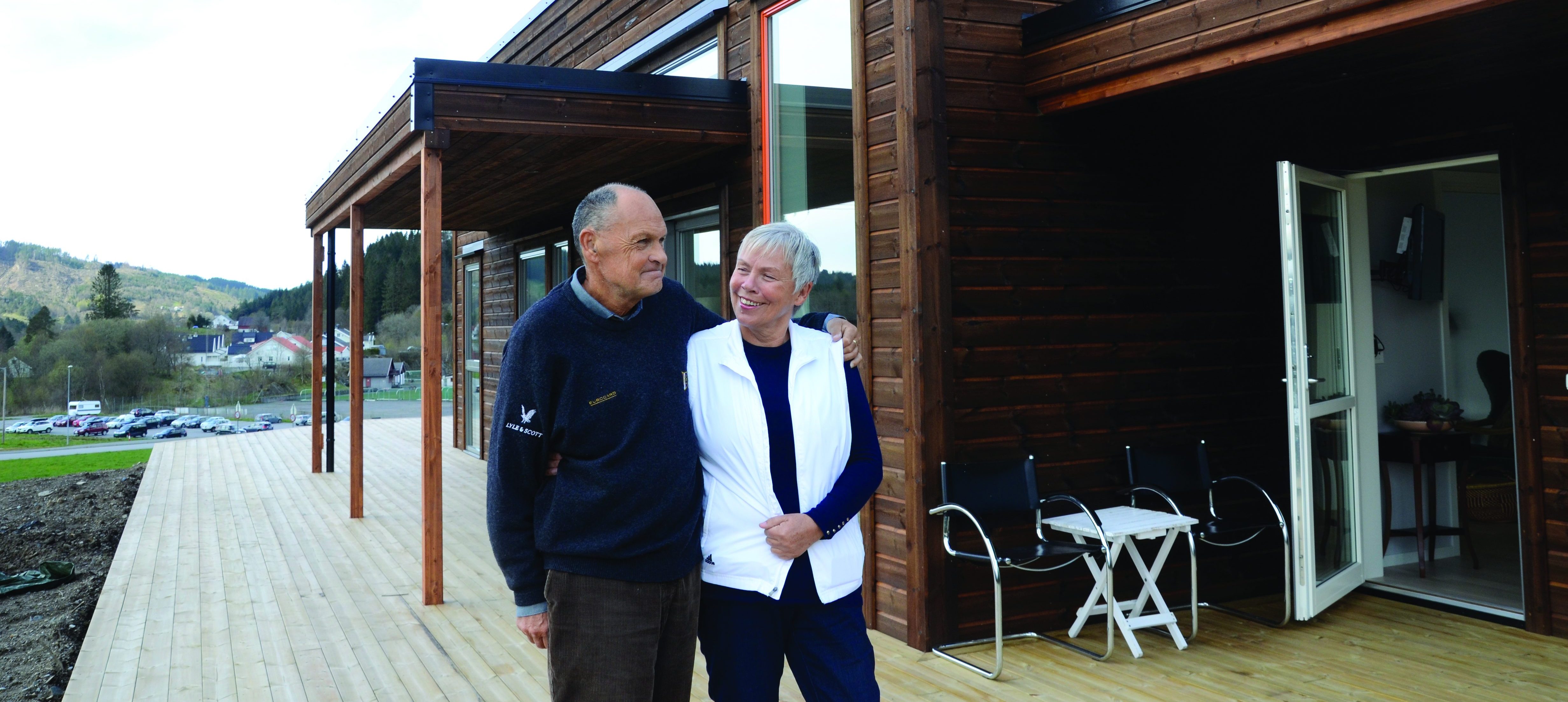 Kjell og Erna Mjåtvedt er stårlande nøgde med det funkishuset dei no nettopp har flytta inn i.